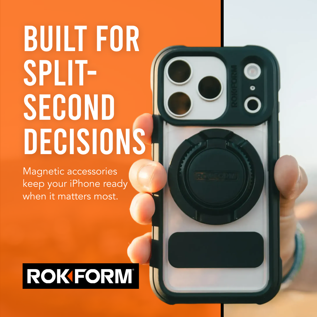 The scene transitions to a stark, minimalist presentation of the brand logo. The entire screen is filled with a solid, deep black background. In the center, the brand name "ROKFORM" is displayed in bold, white, sans-serif capital letters. The 'K's in 'ROKFORM' are stylized, resembling angular arrows or chevrons pointing inwards, creating a distinctive visual element. The typography is clean and modern, contrasting sharply with the dark background. There are no other elements, text, or graphics visible. The lighting is uniform, highlighting the crisp white logo against the black. The overall mood is professional, direct, and conclusive, serving as an effective brand sign-off for the product demonstration.