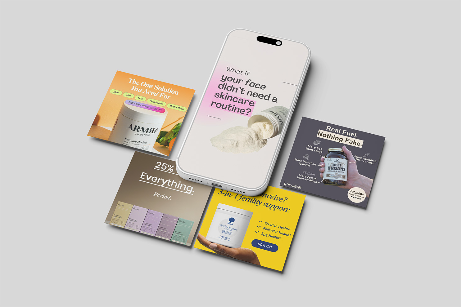 A curated collection of high-performing supplement ad templates designed for Meta, ready to customize for your brand. Includes proven creative formats, copy frameworks, and design patterns that convert.